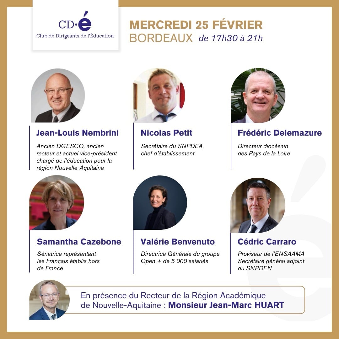 Provoquer des rencontres entre tous ceux qui dirigent des établissements scolaires ( publics ou privés sous contrat), des établissements du supérieur, des Centres de formation d’apprentis, en métropole, dans les DOM-TOM et à l’international.